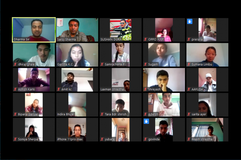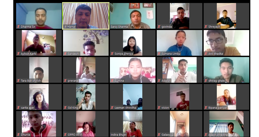 In the course of conducting online classes, a real-time video based lectures started taking place from today. The very first session of its kind was conducted by Dharma Kumar Poudel, HOD and Faculty member of English. There were 43 students attending lectures from different locations away from school. Based on quite positive response received both from students and faculties, we intend to continue with this idea for other subjects in coming days.